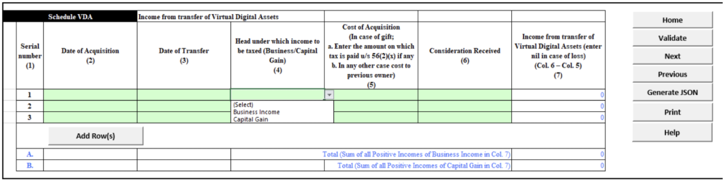 Thus receipt of VDA for nil of inadequate consideration will be taxed in the hands of recipient as income form other sources